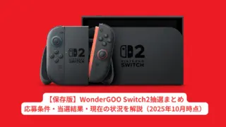 switch2 【保存版】WonderGOO Switch2抽選まとめ|応募条件・当選結果・現在の状況を解説(2025年10月時点) WonderGOOで実施されたSwitch2抽選まとめ。応募方法・当選連絡・受取手順を記録として保存。現在は終了済みですが、他店舗の販売情報も紹介。 2025.04.26 switch2